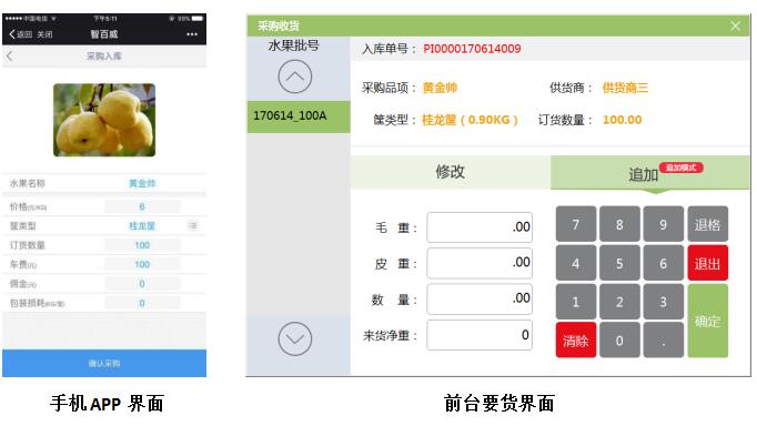 一机在手,轻松拥有,门店可通过前台和手机轻松下订单,在如今人员成本居高不下和软件功能为“重总部,轻门店”模式下,一人多用是节省成本和提高效率根本法宝,智百威果蔬行业版可通过过手机APP和前台轻松下订单。